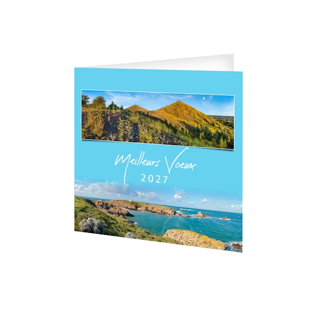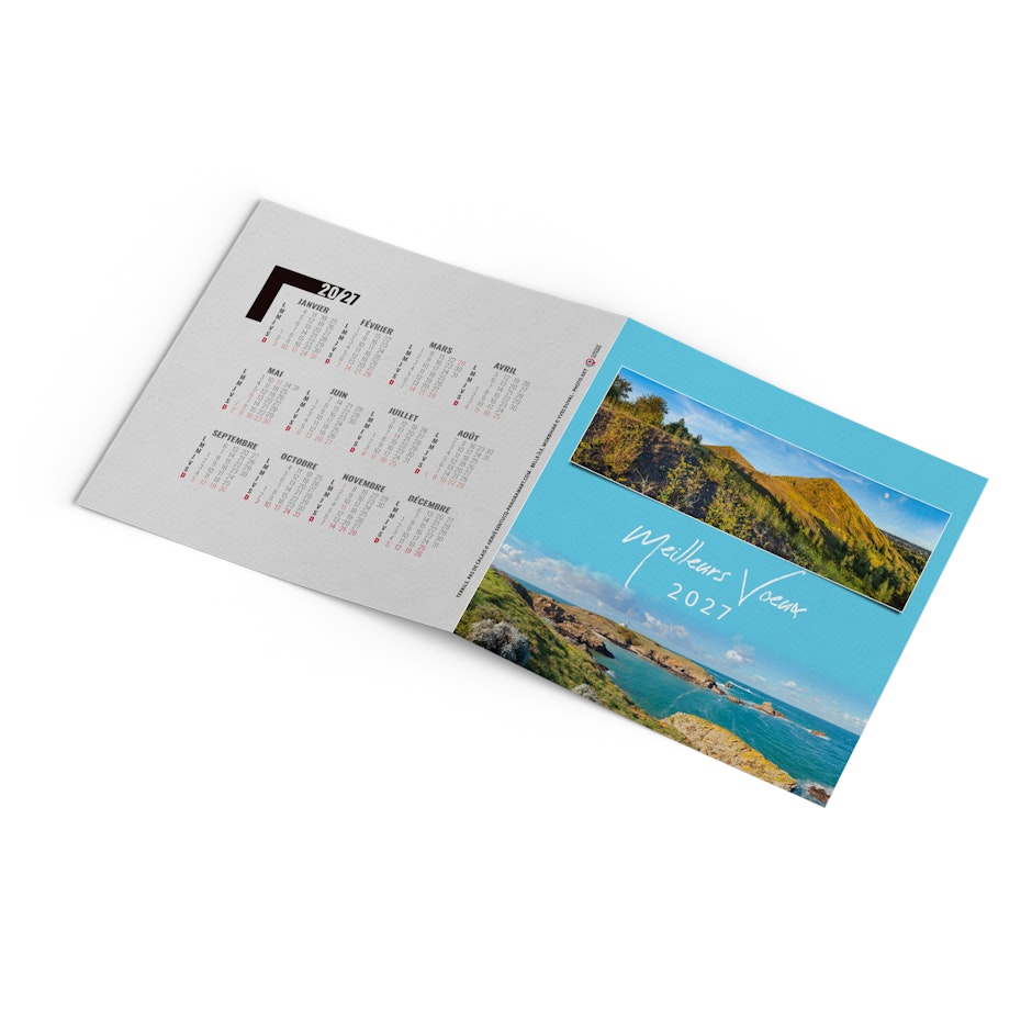 Découvrez notre carte de voeux publicitaire avec calendrier 2027. Souhaitez vos meilleurs voeux à tout votre entourage avec cette carte illustrée sur le thème du voyage et des vacances en France. Photographie Yves Duval et hervé Sentucq.