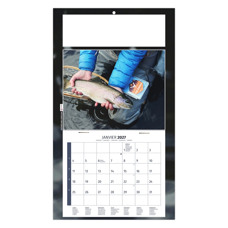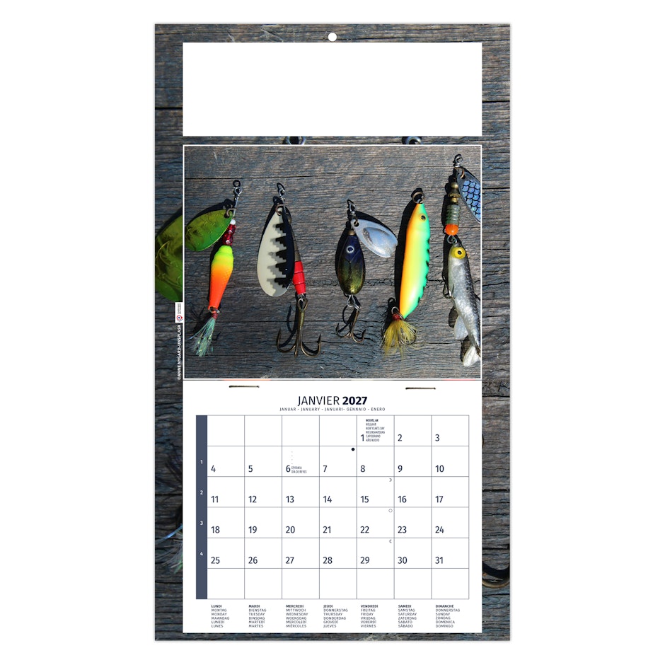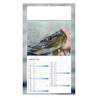 Calendrier publicitaire 1 vue sur dos carton illustré avec 4 magnifiques photos de pratiques de la pêche.