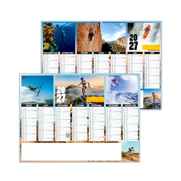 Calendrier est illustré sur le thème du sport extrême. Osez le risque, chercher le dépassement de soi, un effort intense que recherchent ces sportifs de l'extrême. Photographies Adobestock photos. Il est possible de personnaliser avec vos propres photos à partir de 100 ex.