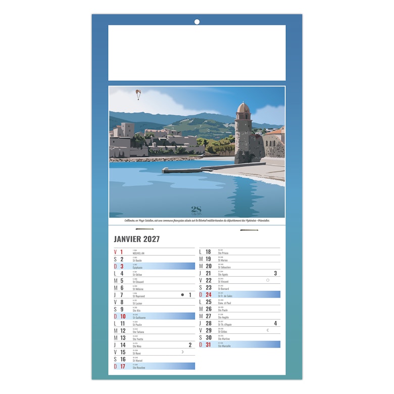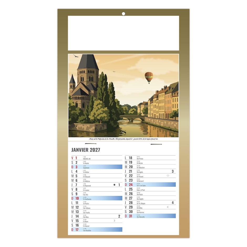 Sans plus-value, panachez les calendriers plaques 1 vue dos carton à partire de 100ex par références.