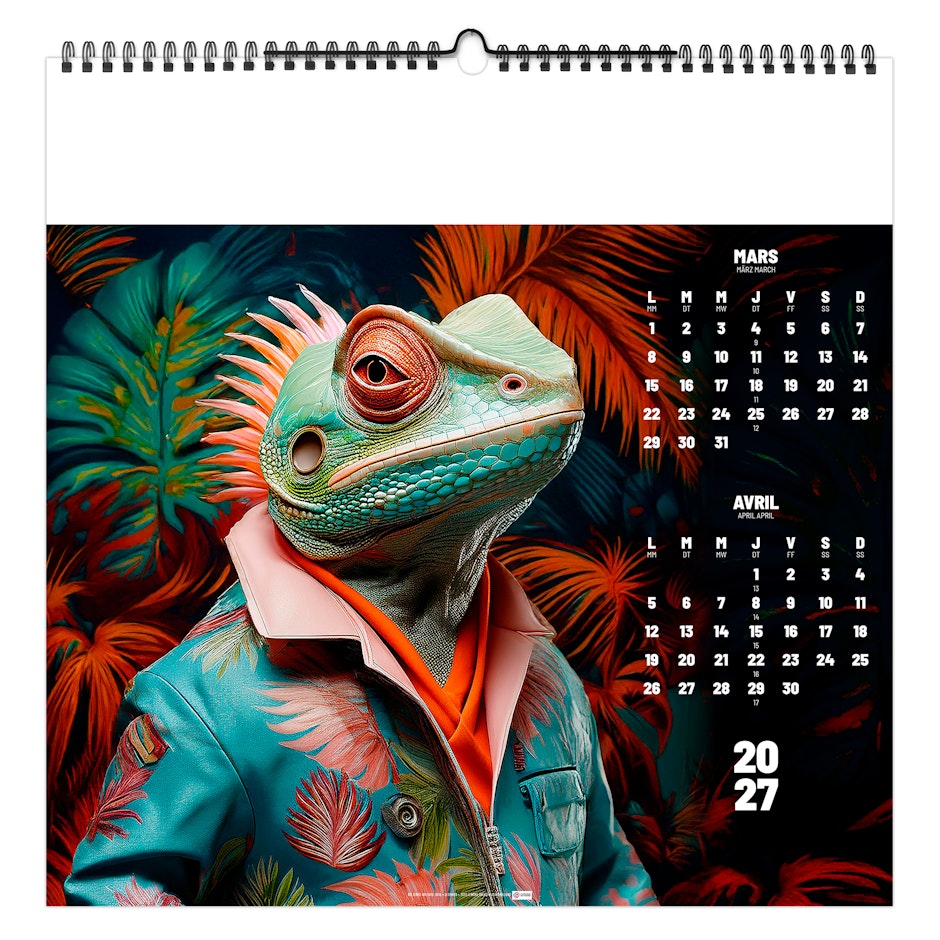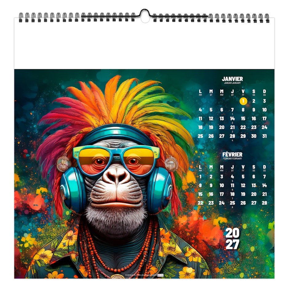 Découvrez nos animaux pop art réinventés par l’intelligence artificielle : un mélange vibrant de couleurs, de formes audacieuses et de créativité débridée. Chaque illustration transforme l’animal en icône graphique, capturant l’énergie et la fantaisie du pop art classique tout en offrant une vision moderne et unique. Parfaits pour la décoration, le merchandising ou simplement pour le plaisir des yeux, ces visuels surprenants et originaux éveillent la curiosité et donnent vie à chaque espace. Création Calendriers Alexandre.