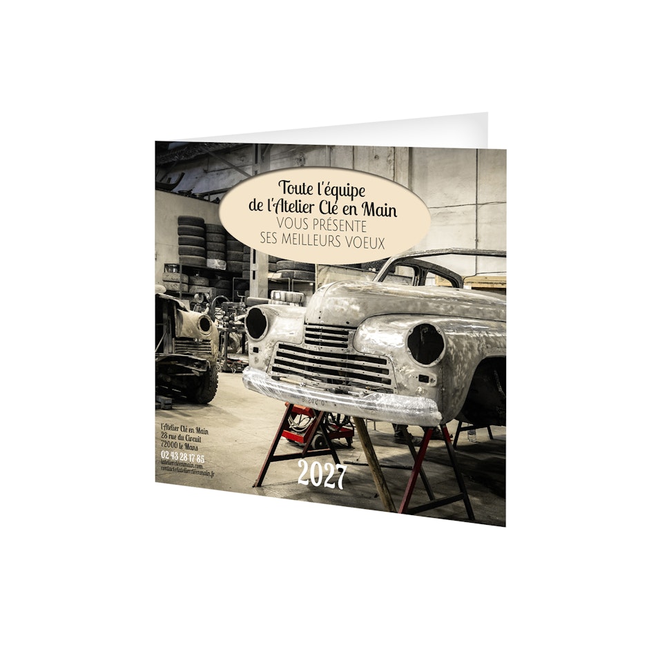 Imprimée sur papier couché mat 350g, vernis en pages 1 et 4.