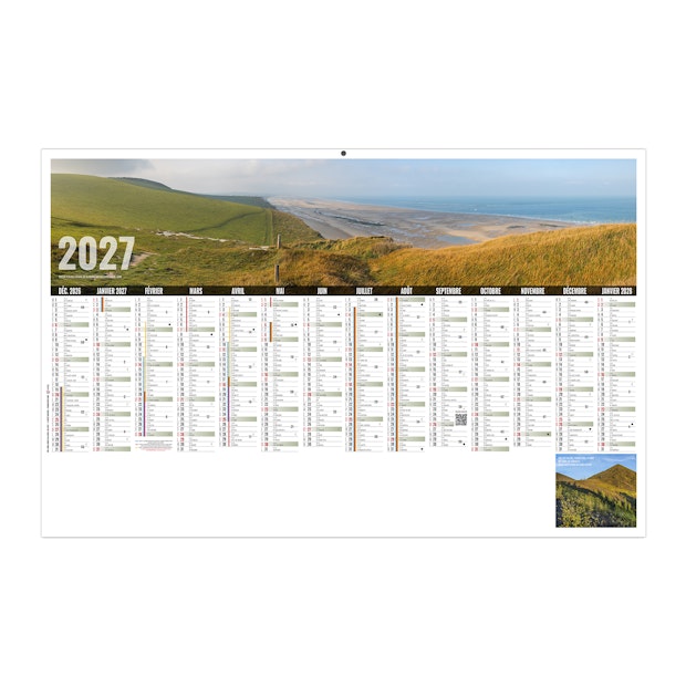Calendrier illustré d'une photo panoramique de la baie d'Écalgrain dans la Manche et le pont à haubans de Normandie qui relie le Havre à Honfleur dans la Seine-Maritime. Photographies d'Yves Duval et Hervé Sentucq.