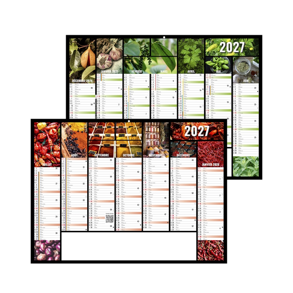Calendrier illustré sur le thème des épices. Ce calendrier est personnalisable avec vos photos à partir de 100 ex. Photographies Unsplash.