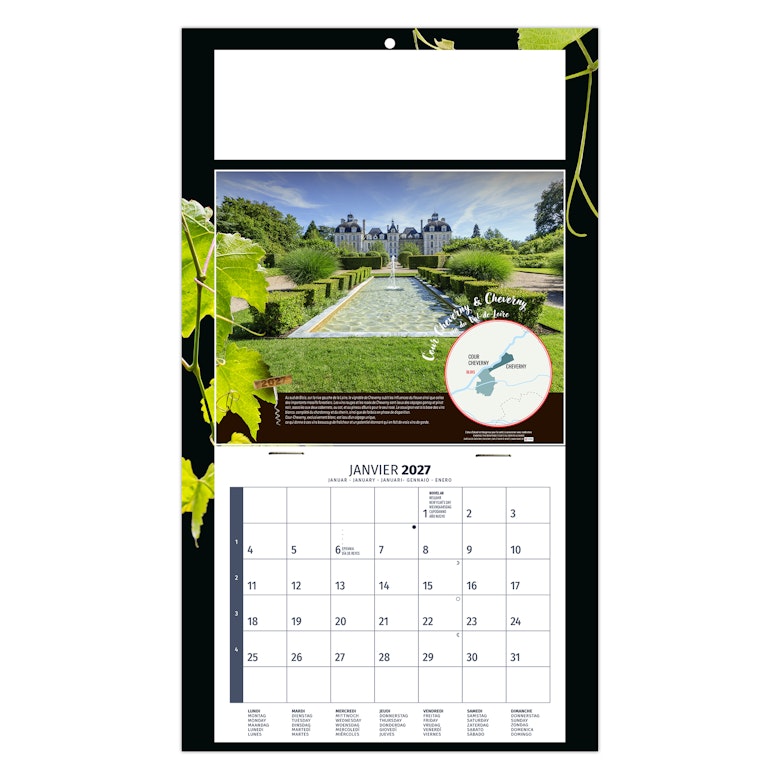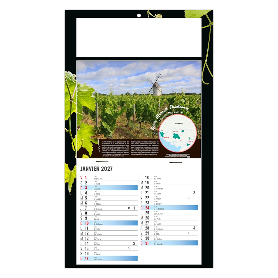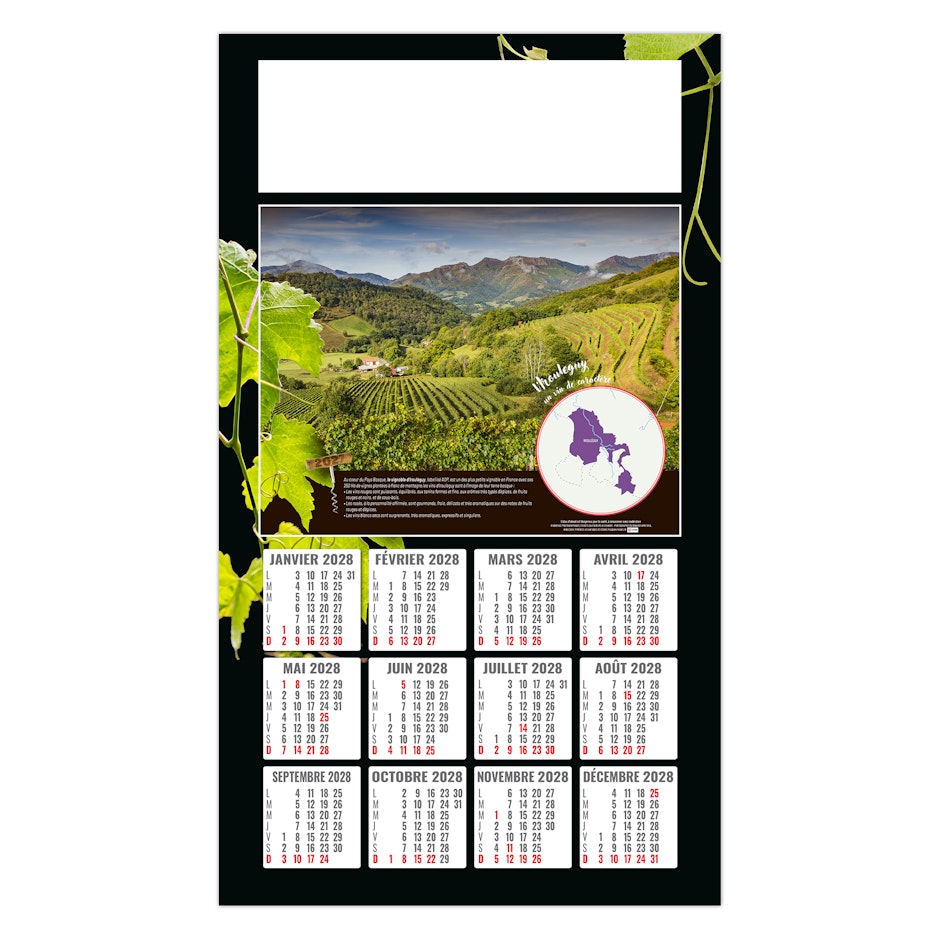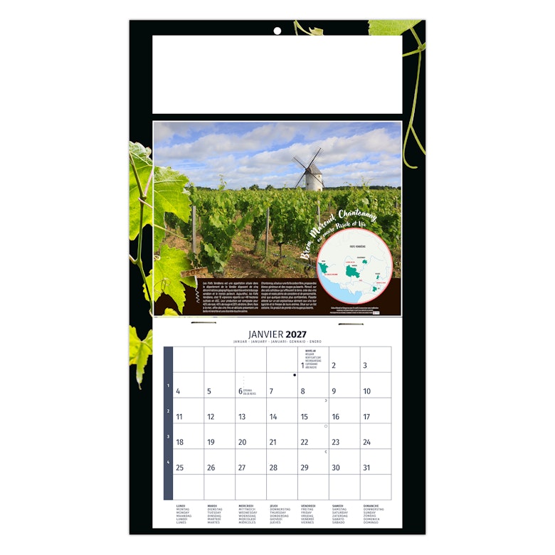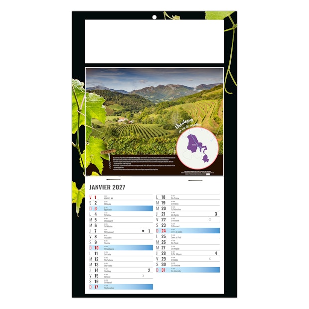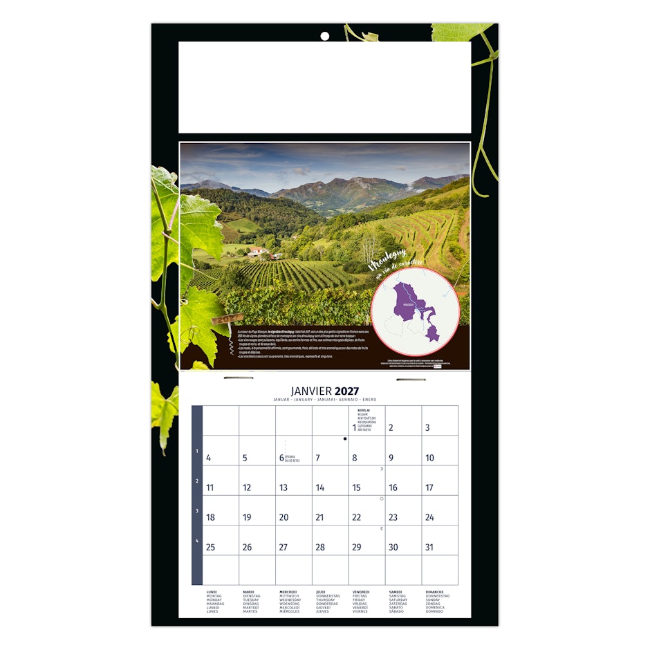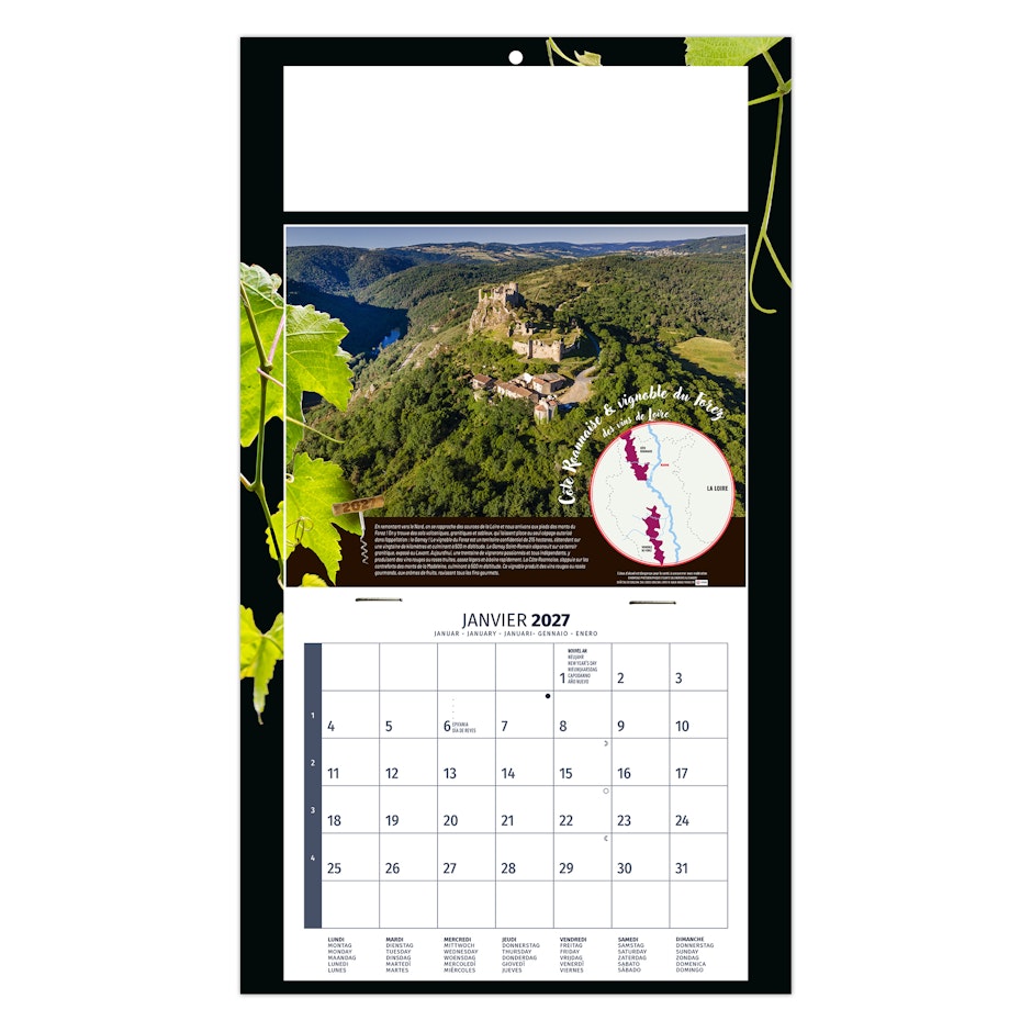 Calendrier illustré de 4 photos de vignobles fançais de petites appellations. Adobestock - Hemis.