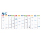12 mois sur une face. La grille comprend les numéros de semaines, phases lunaires, et les congés scolaires et une partie notes.