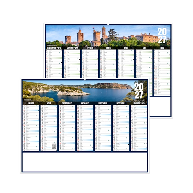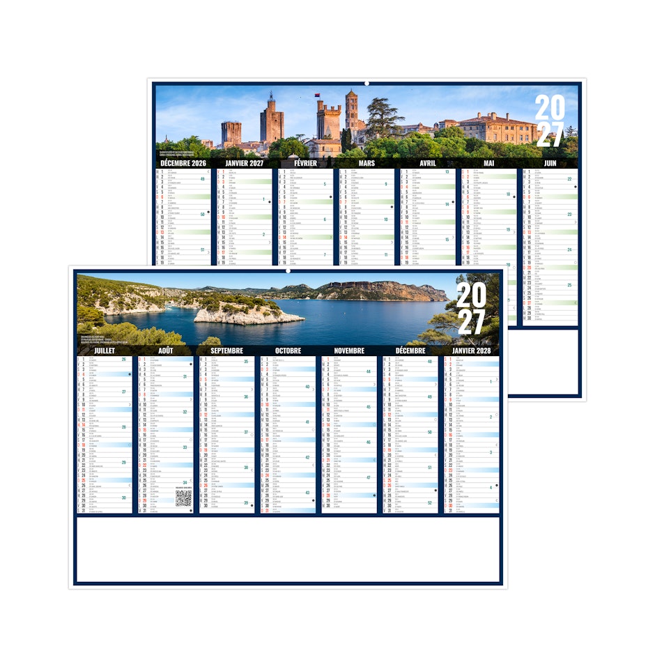 Vous aimez la Provence? Alors venez découvrir notre modèle de calendrier bancaire publicitaire 2027 Provence, nous vous emmenons découvrir Duché d'Uzès avec sa tour ménestrel dans le Gard et les Calanques de Port-Miou, Cassis dans les Bouches-du-Rhône. Photographies HERVÉ SENTUCQ.