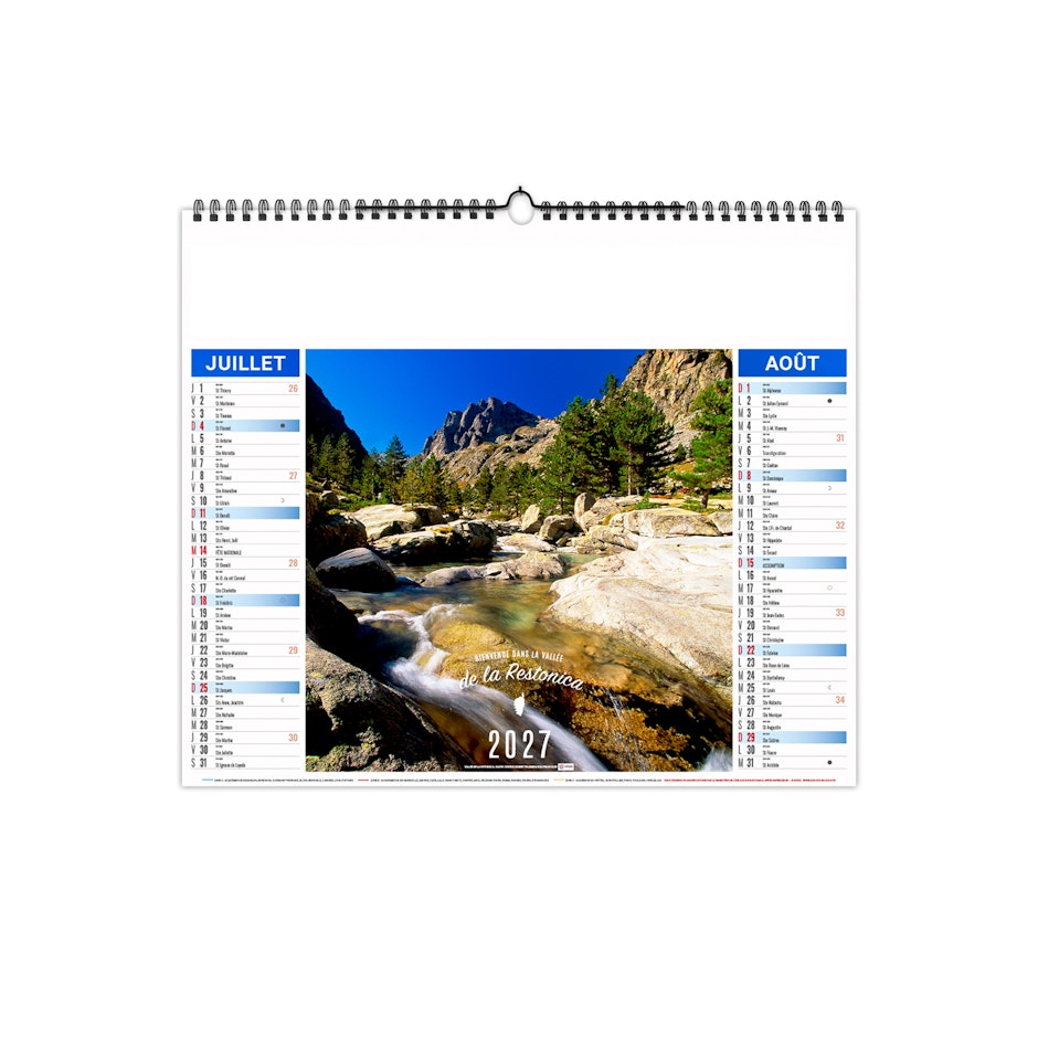 Calendrier sur la Corse, cette île de Méditerranée, réserve de biodiversité, marquée par son passé italien, mais aujourd'hui rendez-vous touristique par excellence (3,5 millions par an essenciellement européens). Partez à la découverte de ce territoire à forte personnalité, et laissez-vous émerveiller par ses 1 047 km de littoral, ses nombreux sites classés (Calanche de Piana, Réserve de Scandola, Bastia, Bonifacio, Corte…). Photographies Adobes stock - Onlyfrance.fr.