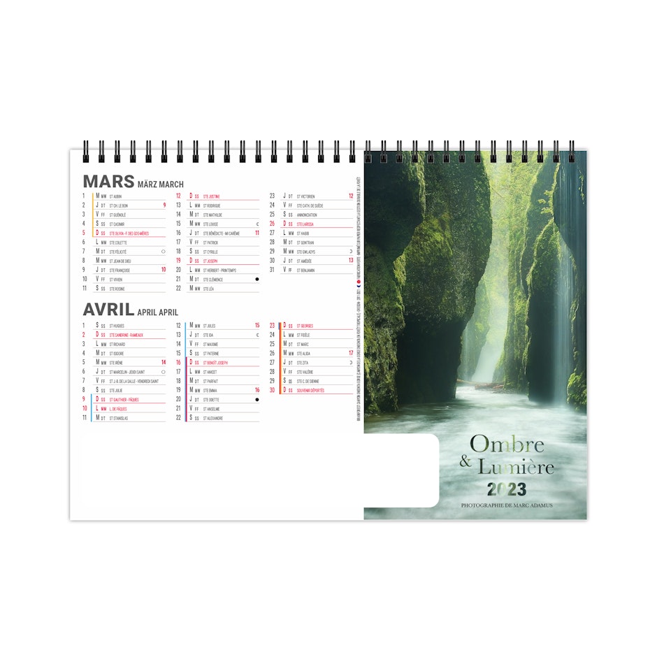 Tous nos calendriers sont fabriqués en France dans nos ateliers. Papier respectant la gestion durable de la forêt.