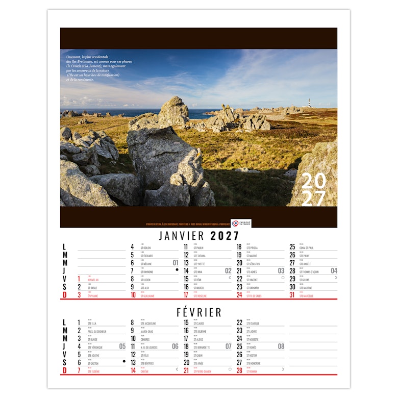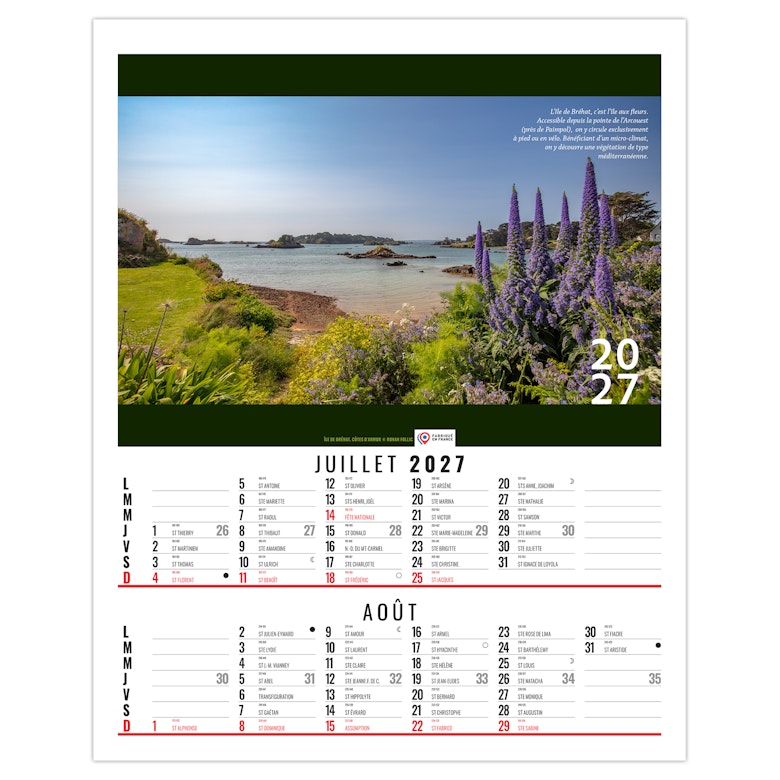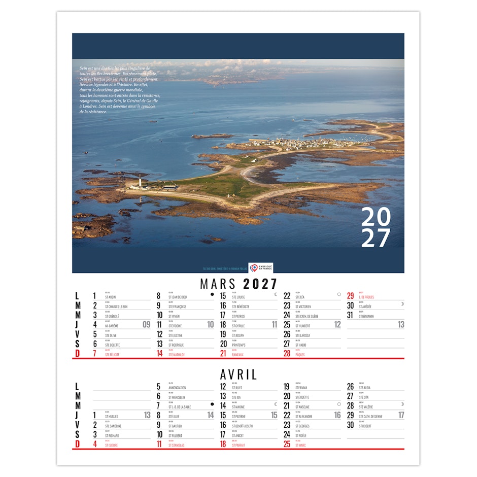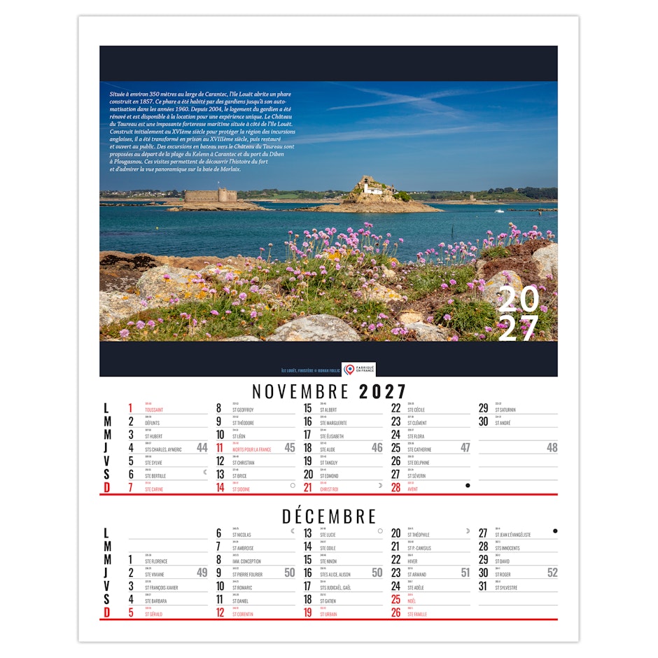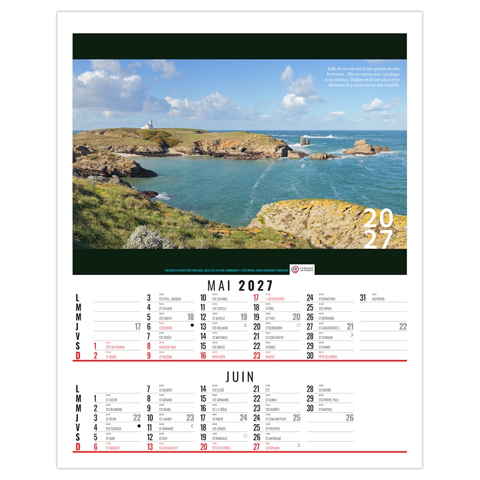 Calendrier illustré de 6 vues d'îles bretonnes situées dans le Finistère, les Côtes d'Armor ou encore le Morbihan. Photographies Yves Duval - Ronan Follic.