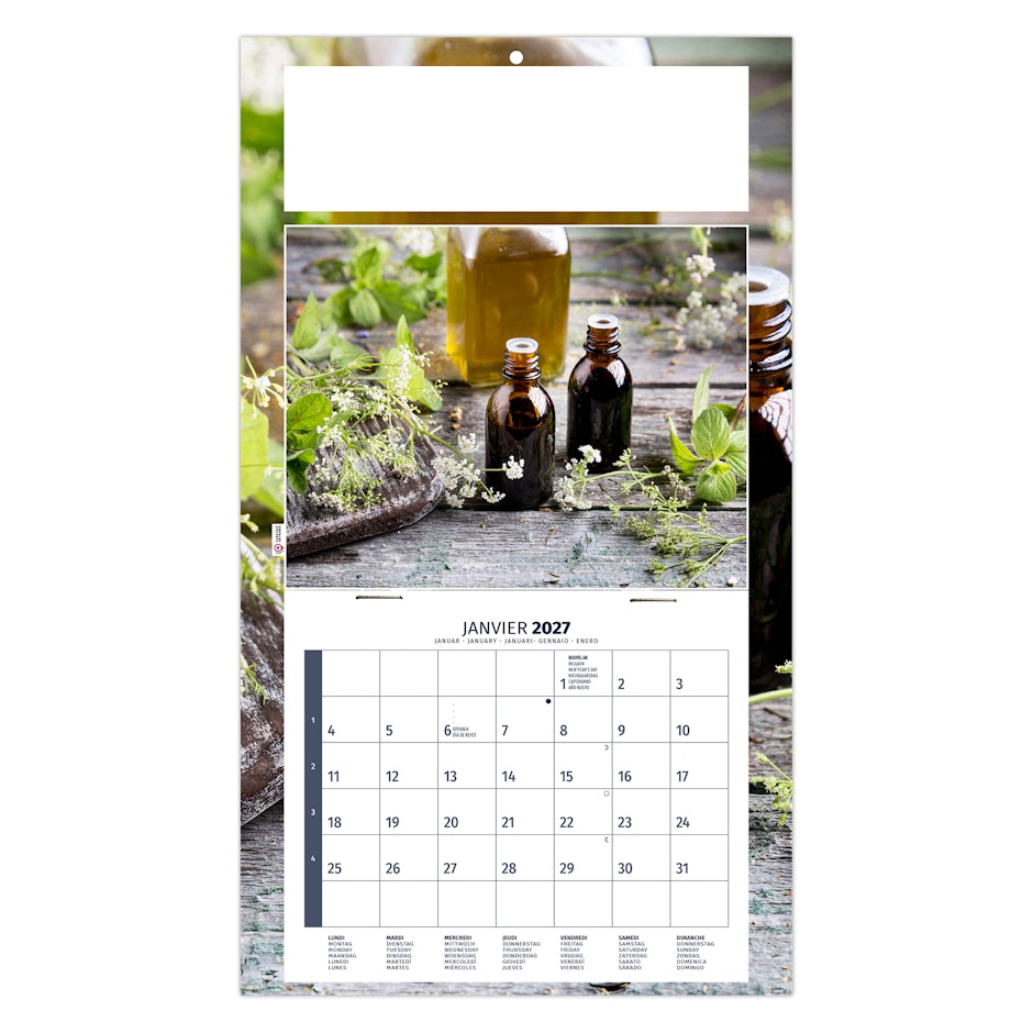 Calendrier illustré de 4 photos sur le thème des médecines douces, le soin par les plantes. Photographies Unsplash.