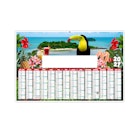 Calendrier illustré d'un montage photographique sur le thème des tropiques, des vacances et du soleil. Photographies Unsplash.