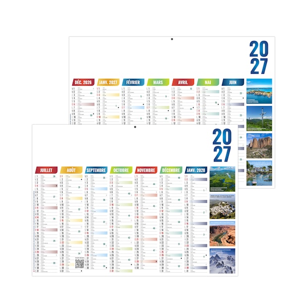 Calendrier illustré d'une série de photos de paysages du monde ou personnalisable avec vos propres photos à partir de 100 ex. Photographies Hemis.fr - Adobe stock photos - Unsplash.