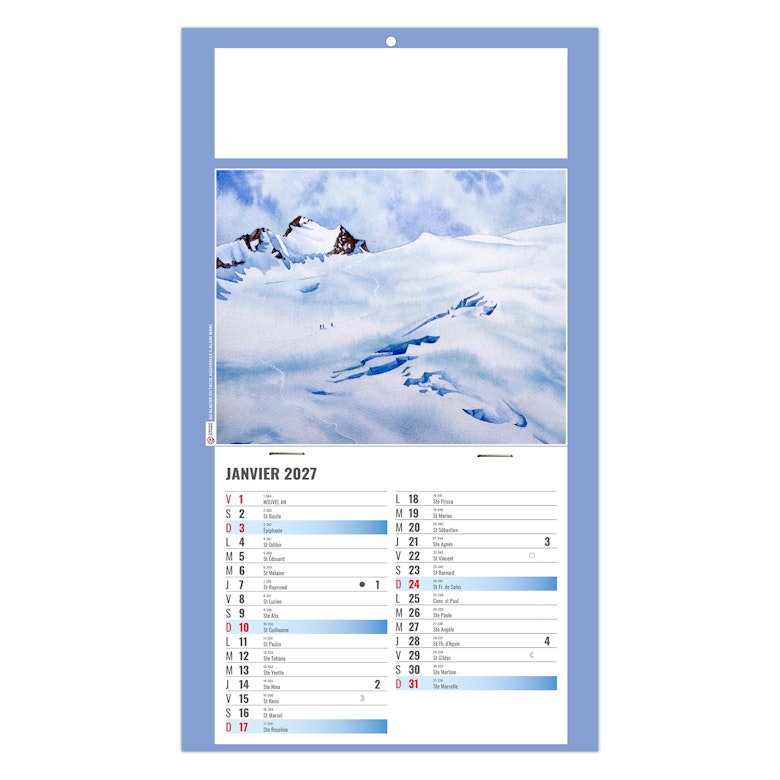 Sans plus-value, panachez les calendriers plaques 1 vue dos carton à partire de 100ex par références.