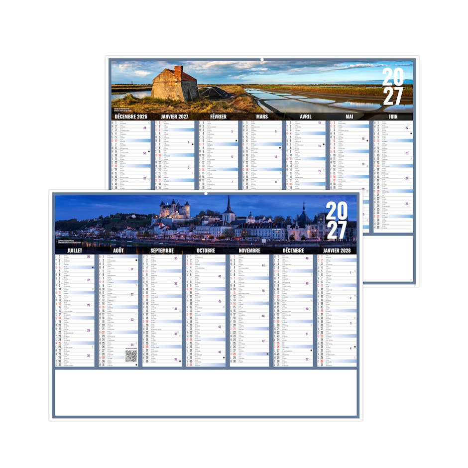 Vous aimez la Pays de Loire? Alors venez découvrir notre modèle de calendrier bancaire publicitaire 2027 Liberté Pays de Loire, nous vous emmenons découvrir les Marais salants de Noirmoutiers en Vendée et Saumur et son château en surplomb dans le Maine-et-Loire. Photographies Yves Duval.