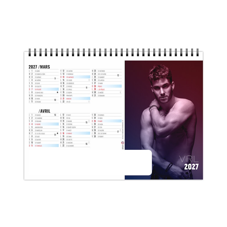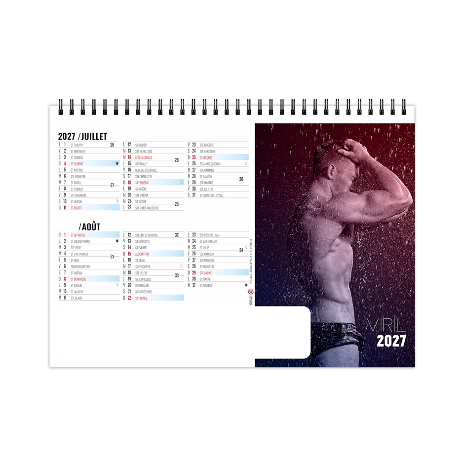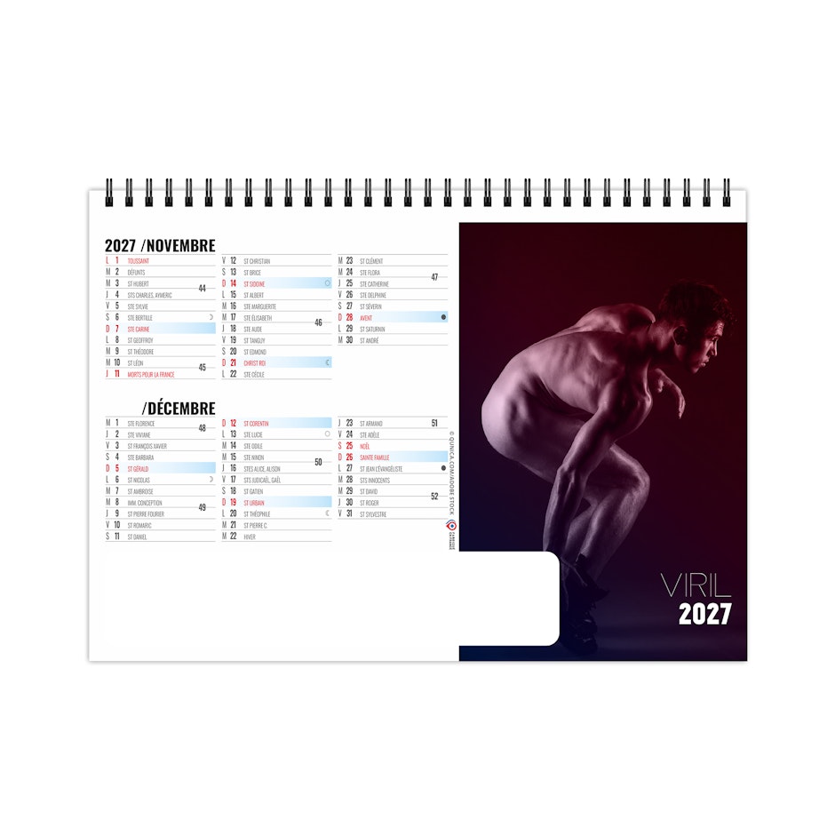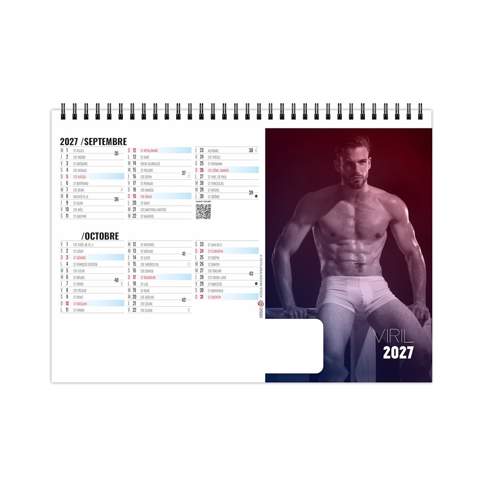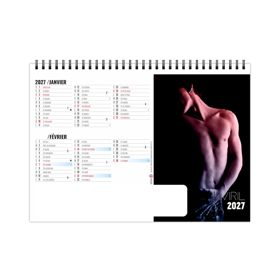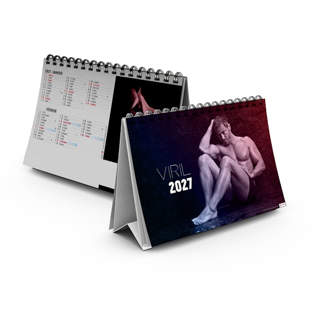 Chevalet de bureau illustré de 6 photos d'hommes nus. Ces portraits mettent en lumière les canons esthétiques de beauté masculine, à savoir une musculature sur développée sous une peau bronzée. Force et virilité, de l'homme FATAL. Photographies Adobe stockphotos.