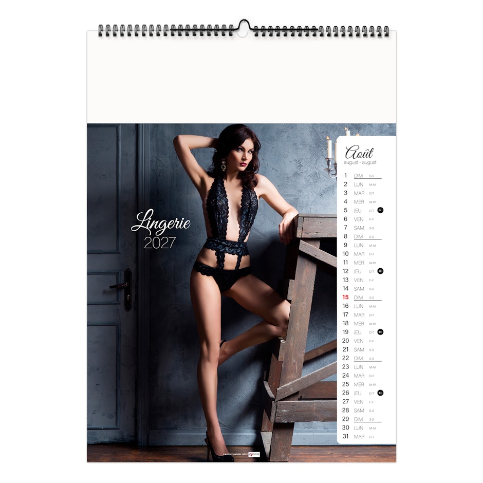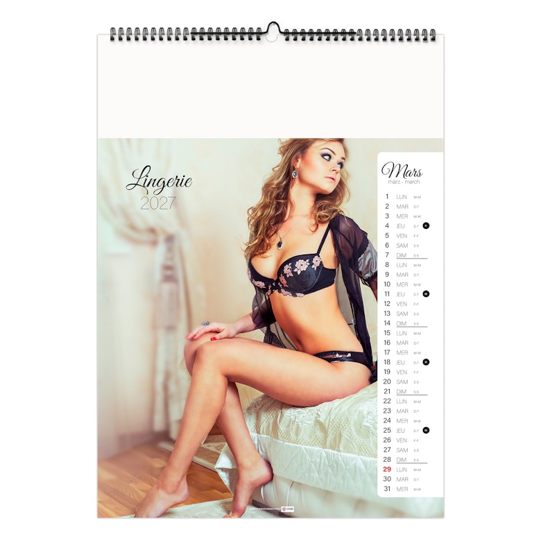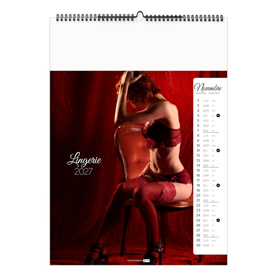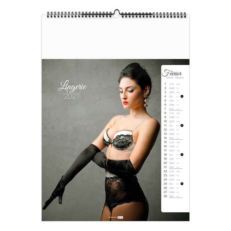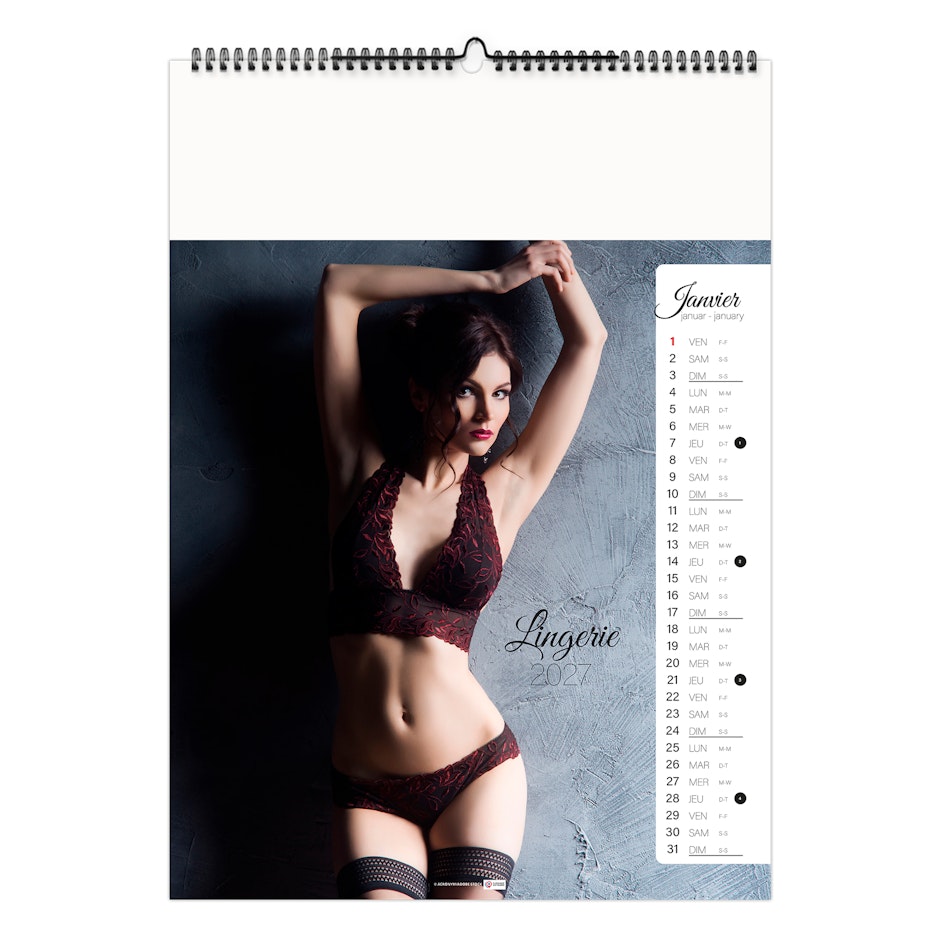 Découvrez ce calendrier dédié à la lingerie fine, en 13 feuillets au format 30x42, pour une communication au fil de l'année esthétique et langoureuse. Photos Adobestock photos.