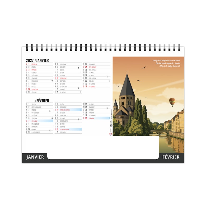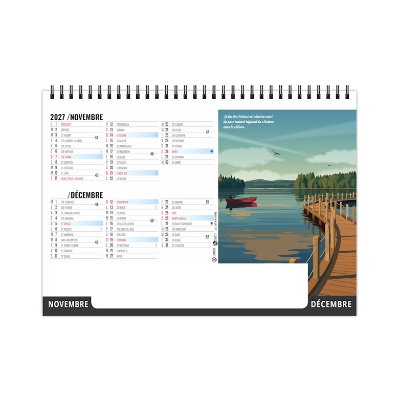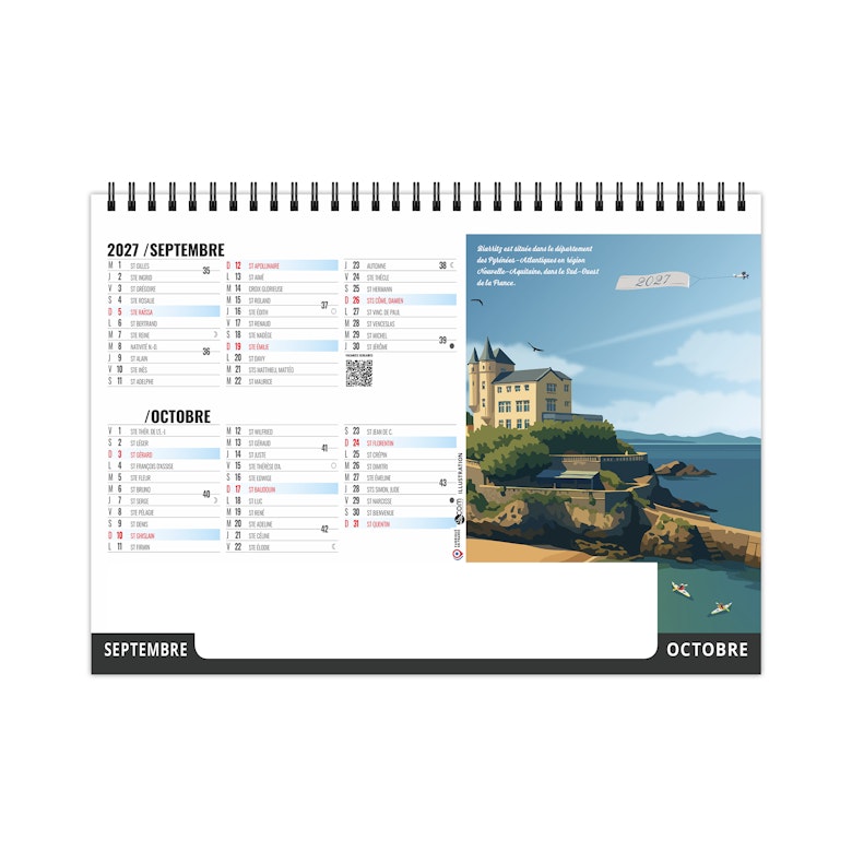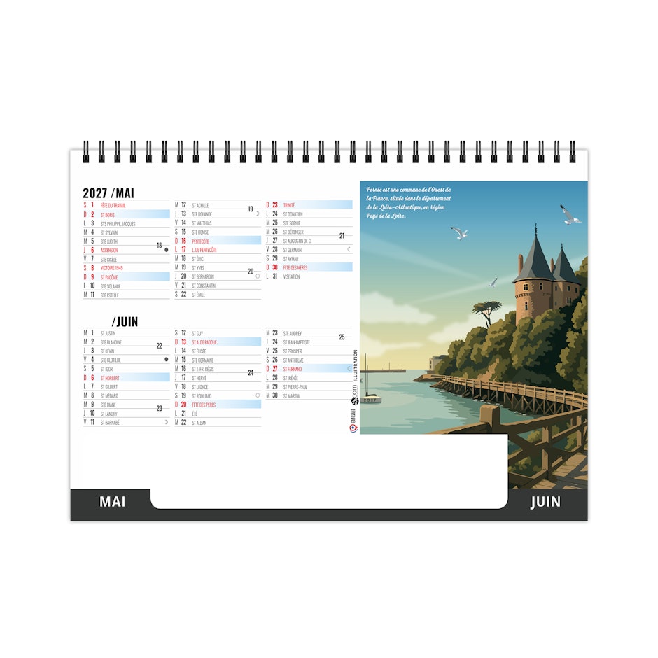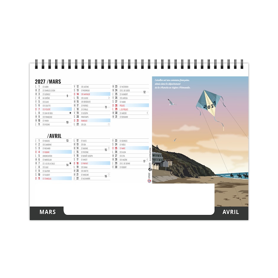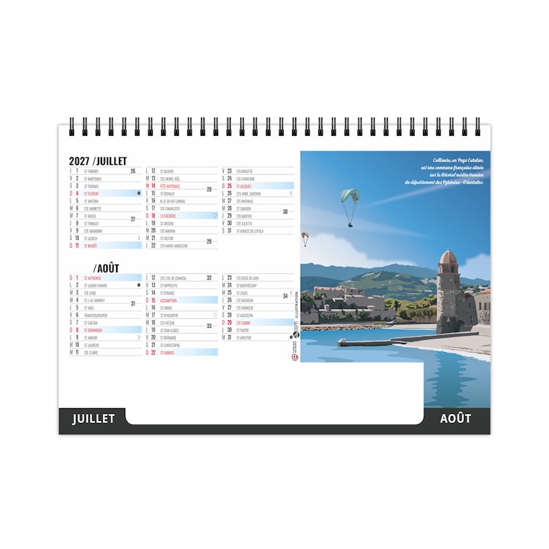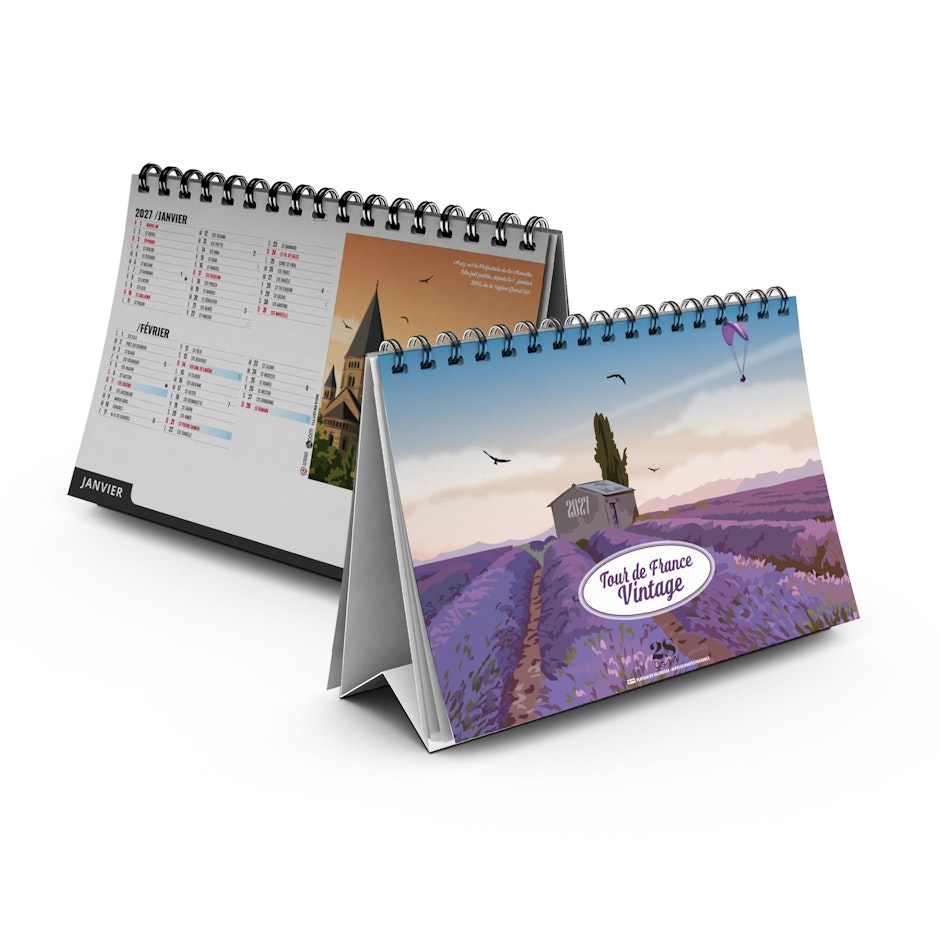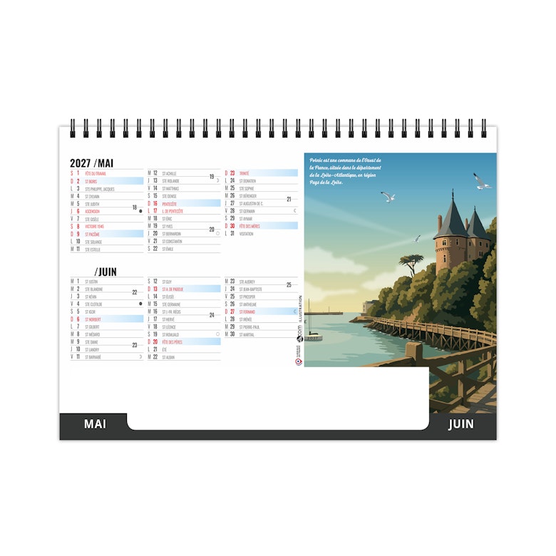 Chevalet de bureau illustré de 6 illustrations numériques de Solène Suteau 2SCOM. Véritable tour de France des meilleurs spots pour les vacances, ce calendrier est à vocation touristique pour tous les lieux touristiques de France.