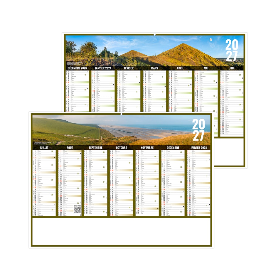 Vous aimez le nord? Alors venez découvrir notre modèle de calendrier bancaire publicitaire 2027 sur les Hauts de France. Nous partons visiter les Terrils de Loos-en-Gohelle et les Falaises du Cap Blanc Nez dans le Pas-de-Calais. Photographies Hervé Sentucq et Yves Duval.