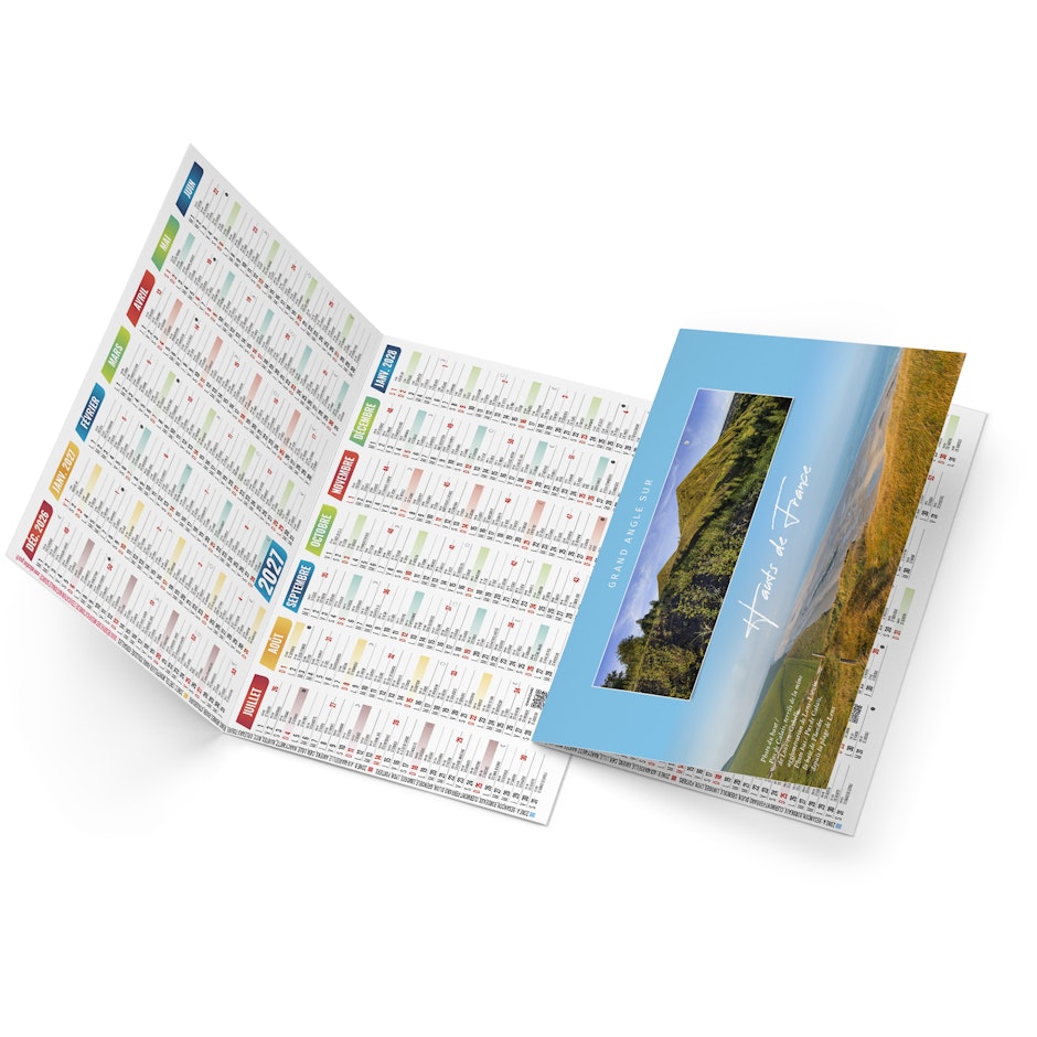 Venez découvrir notre calendrier de poche 2027 publicitaire illustré de photographies d'Hervé Sentucq et d'Yves Duval de paysages de France. Ce calendrier de poche est joli et pratique. Il peut être transporté partout ou il peut tout simplement être posé sur votre bureau sans être encombrant.