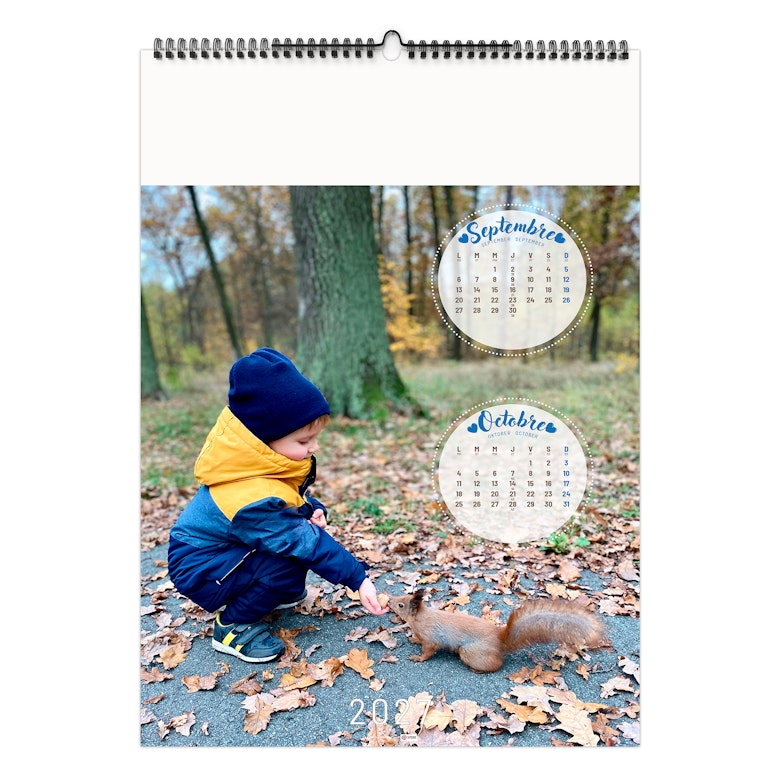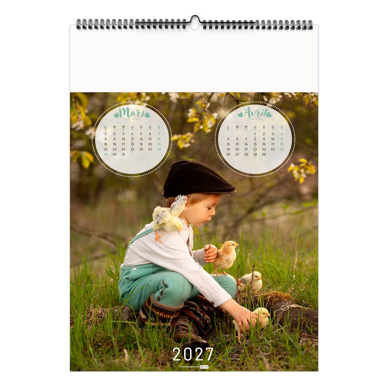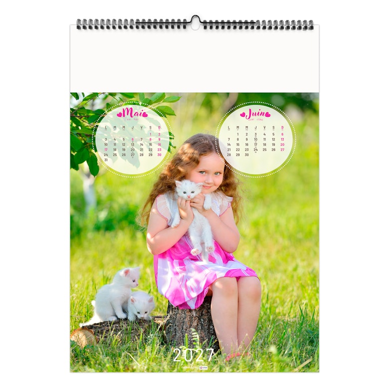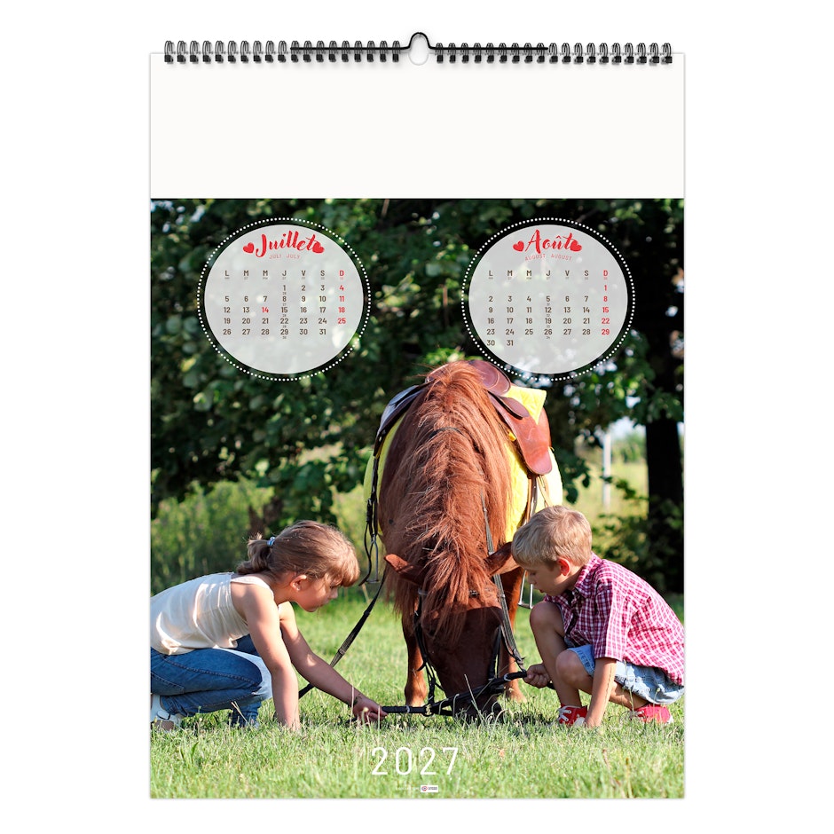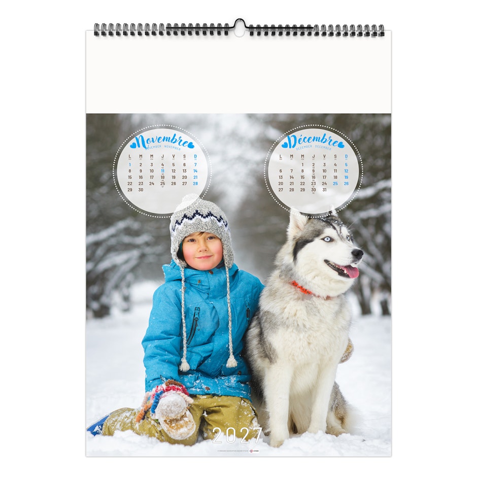 Calendrier 2027 illustré 6 ou 7 feuillets sur le thème des enfants et leur animal de compagnie.