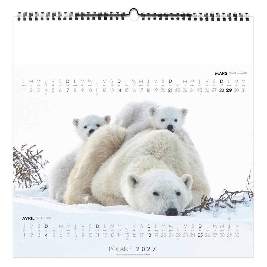 Le pôle Nord est un océan entouré de terres (Canada, Alaska, Russie, Scandinavie). La faune s’adapte aux glaces marines et au froid extrême. On y trouve l'ours polaire, le renard arctique, le lièvre arctique, Muskox (boeuf musqué), qui est adapté au froid extrême avec sa fourrure épaisse, le renne ou encore l'Harfang des neige. L’Antarctique a des manchots et des phoques mais presque pas de mammifères terrestres. Le réchauffement climatique a un impact majeur sur les animaux des régions polaires, et les effets sont souvent très visibles car ces écosystèmes sont extrêmement sensibles aux variations de température. Photographies Olivier Larrey - Naturagency.