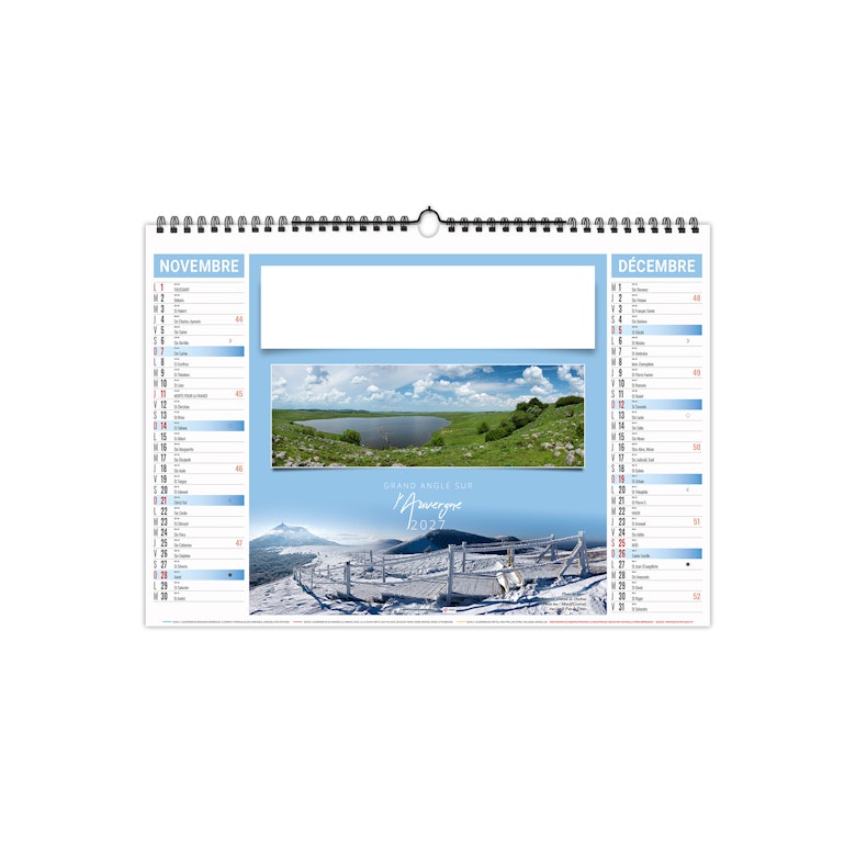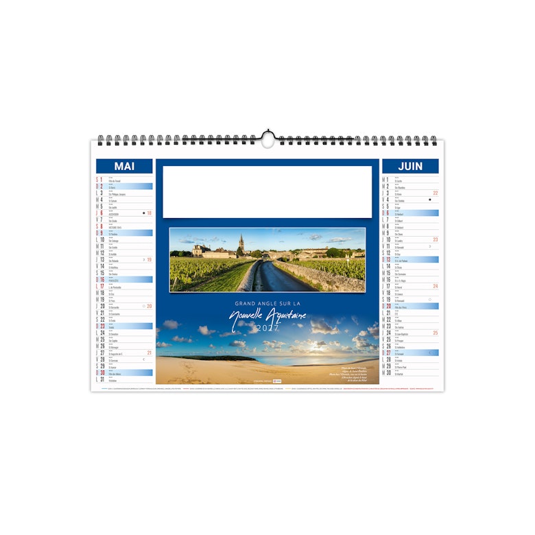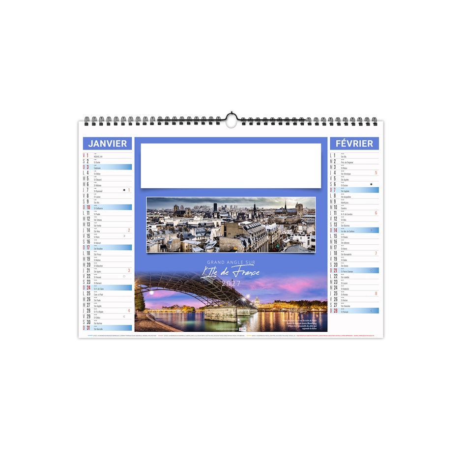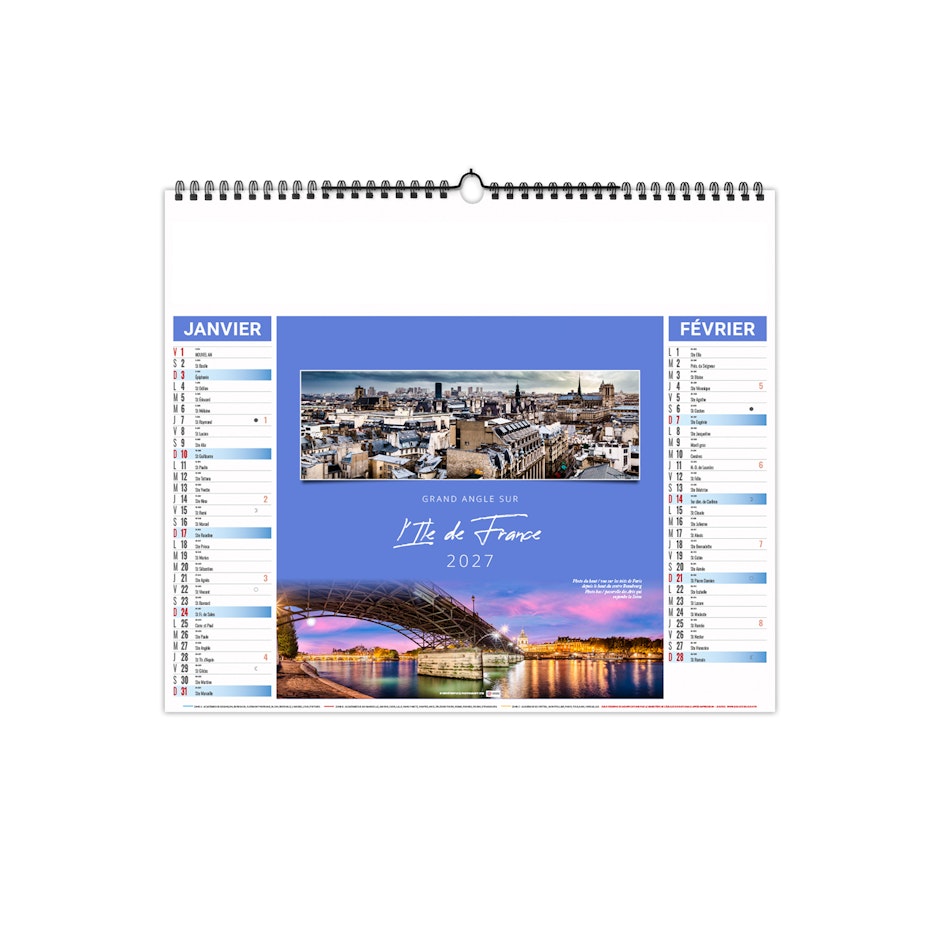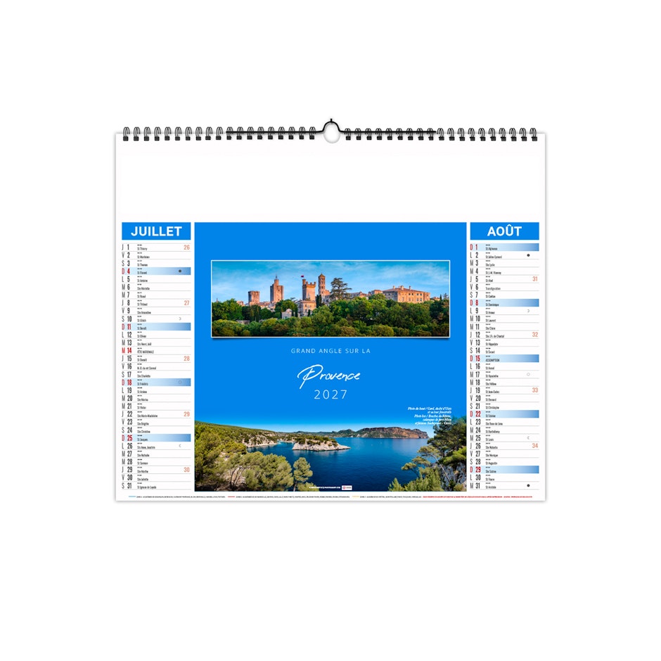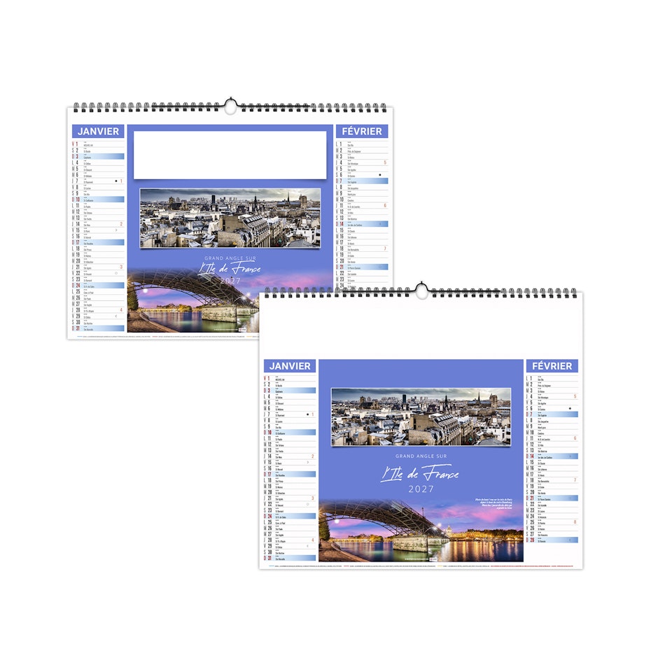 Calendrier illustré de photos panoramiques de sites touristiques français, réalisées par Hervé Sentucq et Yves Duval.