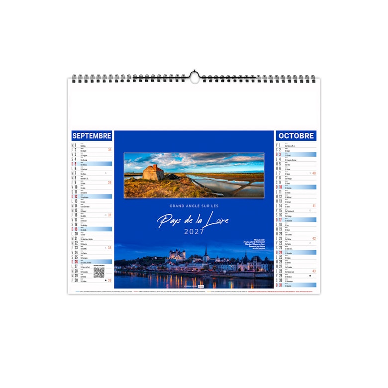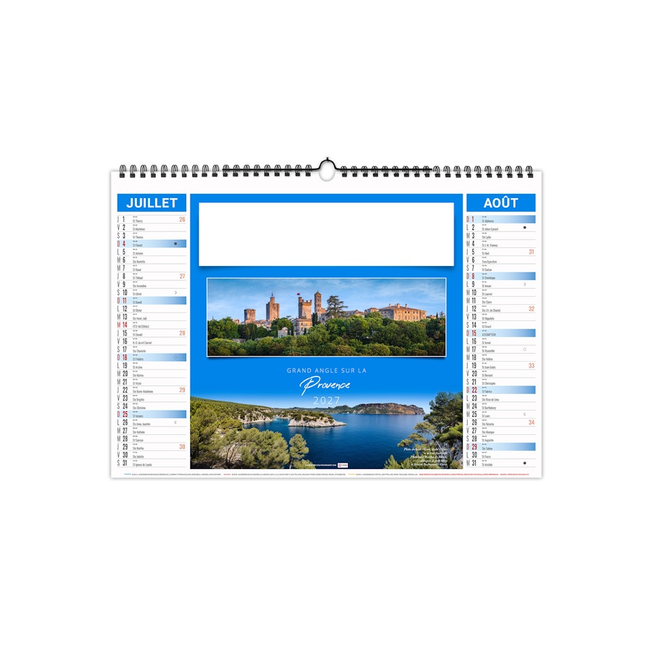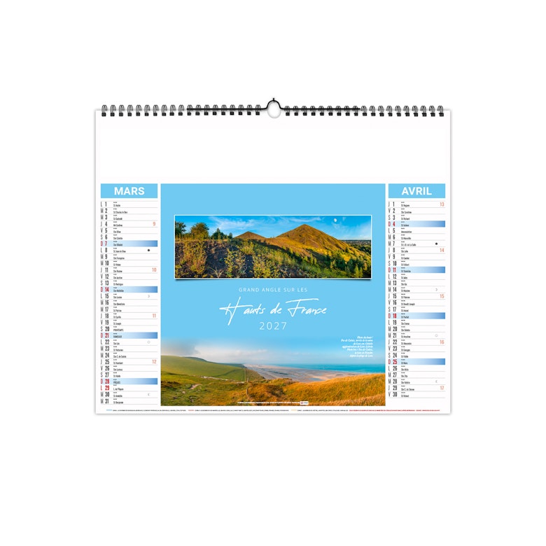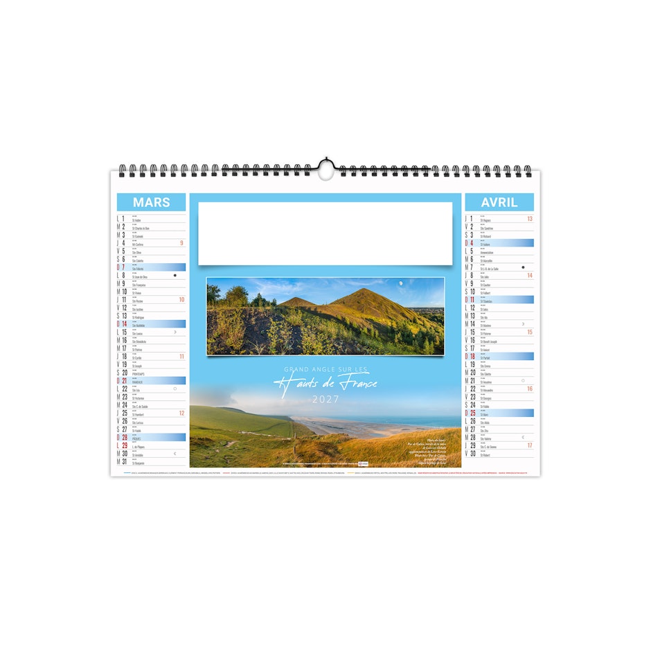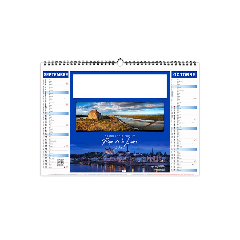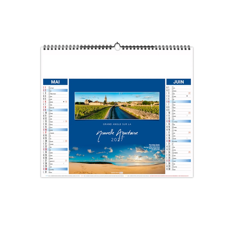 Calendrier illustré de photos panoramiques de sites touristiques français, réalisées par Hervé Sentucq et Yves Duval.