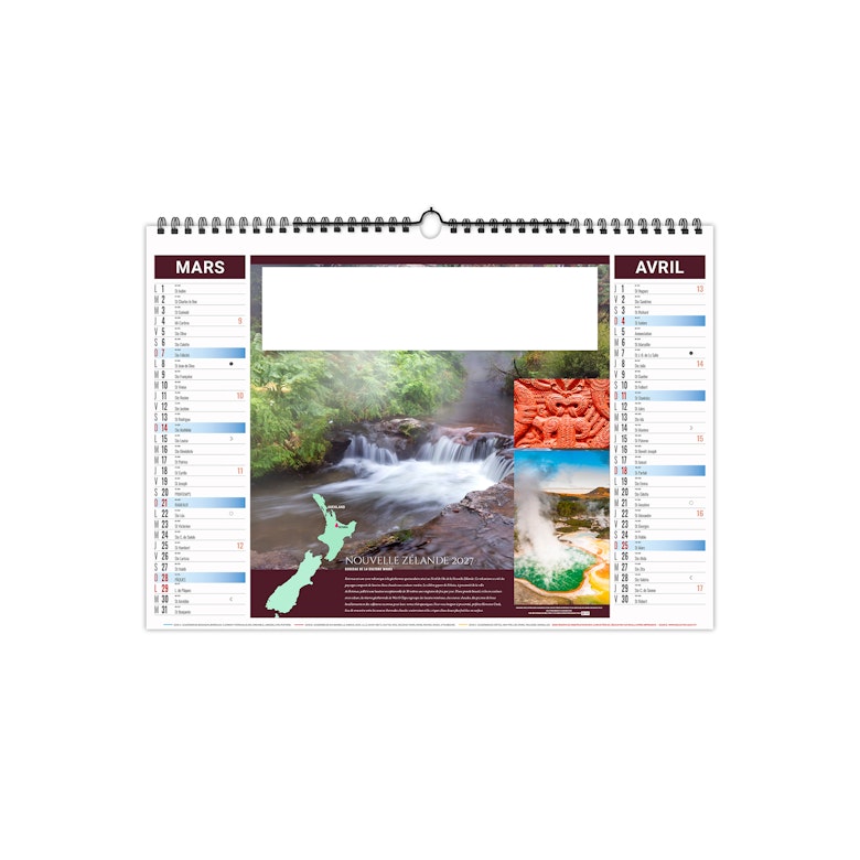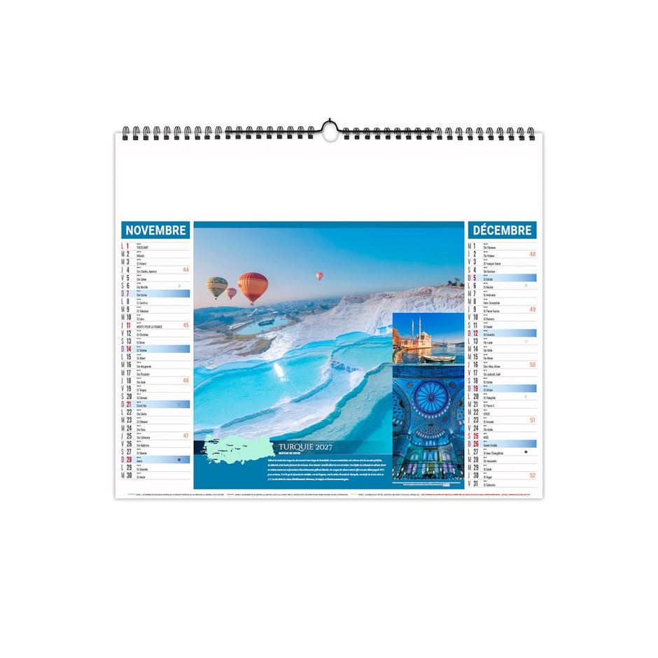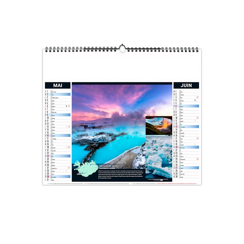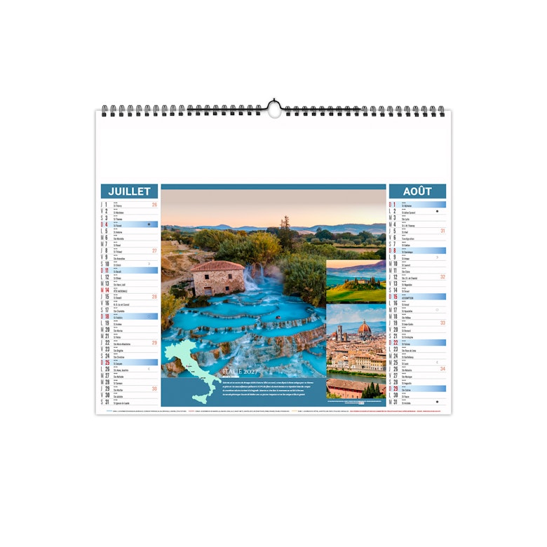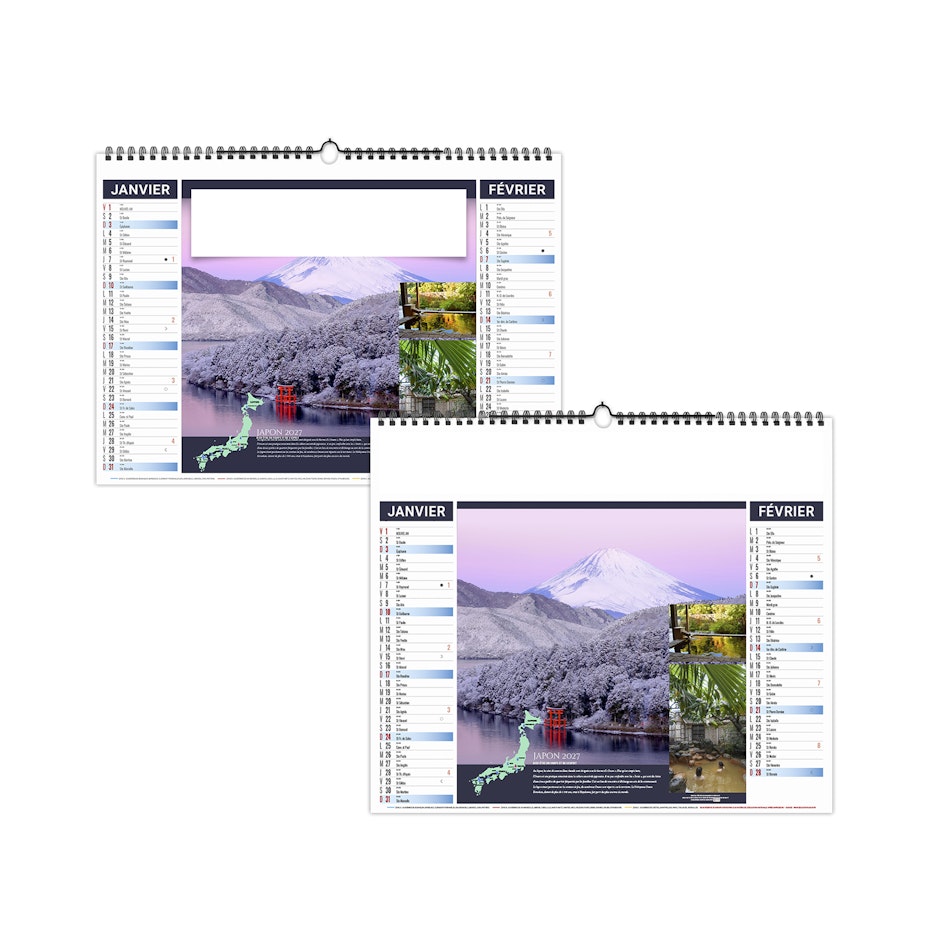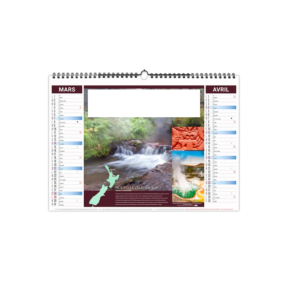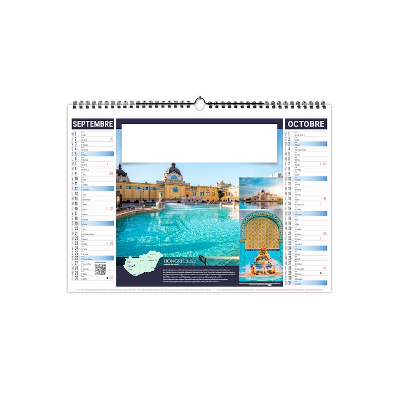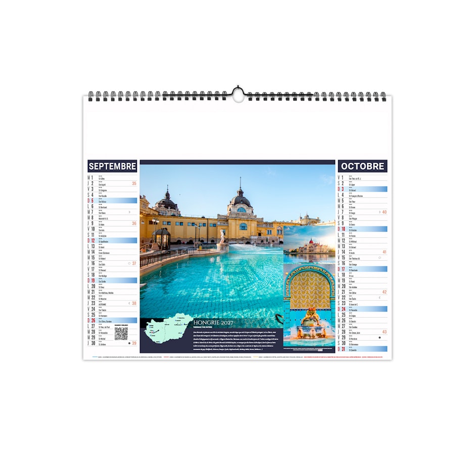 Calendrier est illustré sur le thème du thermalisme international. Partez à la découverte des plus beaux sites du monde. Photographies Adobestock photos.