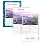 13 mois au recto. Au verso pour les MAXIS dos vierge ou 10 thèmes au choix répiquables : Numéros d'urgence / France routière / France régionale / France Europe / Monde politique / dos Vins / dos Epices / dos Corse / dos Écogestes / dos Eaux thermales. Pour le format MÉDIUM uniquement dos vierge.