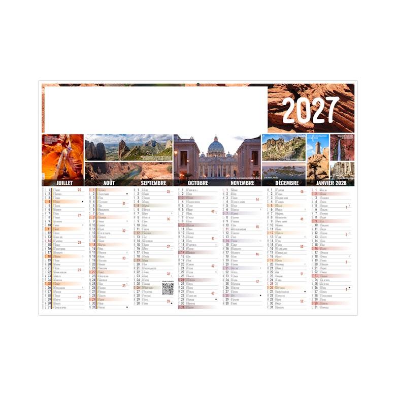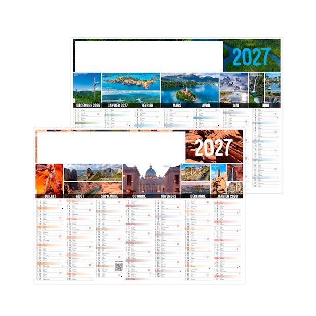 Calendrier illustré d'une série de photos voyages à travers le monde. Photographies Hemis.fr - Adobestock photos.